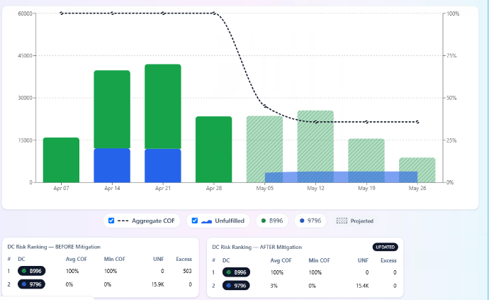 By recalculating the learned function for alternative scenarios, planners can quantify the effect of mitigation actions before executing them — turning OTIF management from reactive firefighting into proactive decision-making.