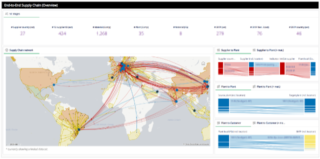 Figure 1: Landing page of the Supply Chain Control Tower – visualizing the full supply chain network consisting of suppliers, intracompany network and customers.